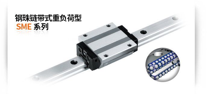 SME系列帶保持器滾珠型線性導(dǎo)軌比起一般標(biāo)準(zhǔn)型線性導(dǎo)軌,搭配鋼珠鏈帶設(shè)計(jì),可使其運(yùn)行更為穩(wěn)定順暢,特別適用于講求高速度、高精度的設(shè)備需求。