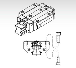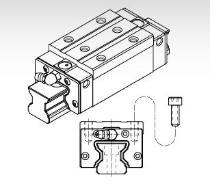 除了可從滑塊的上面進(jìn)行裝配外,同時(shí)又適用于工作臺(tái)無法開安裝螺栓用貫穿孔的狀況下,從滑塊的底面往上進(jìn)行裝配。